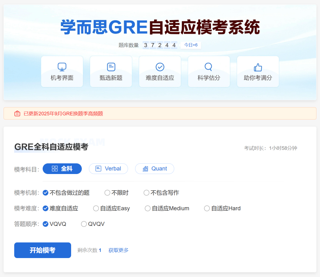 学而思考满分GRE的模考系统里的模考题很接近真实考试,让我提前熟悉了考试的节奏和题型。每次模考后,我都会认真分析错题,总结经验教训,不断调整自己的备考策略。